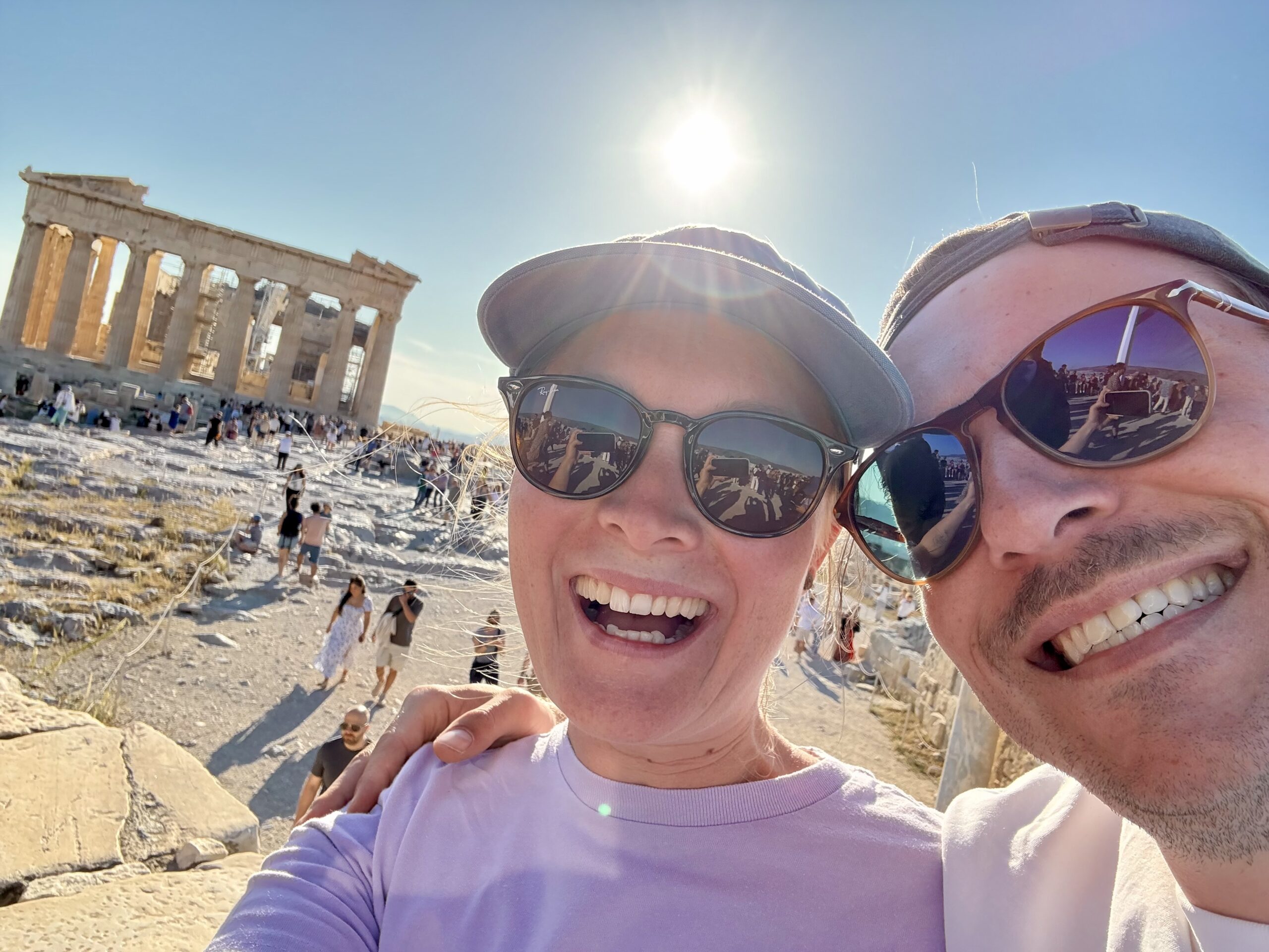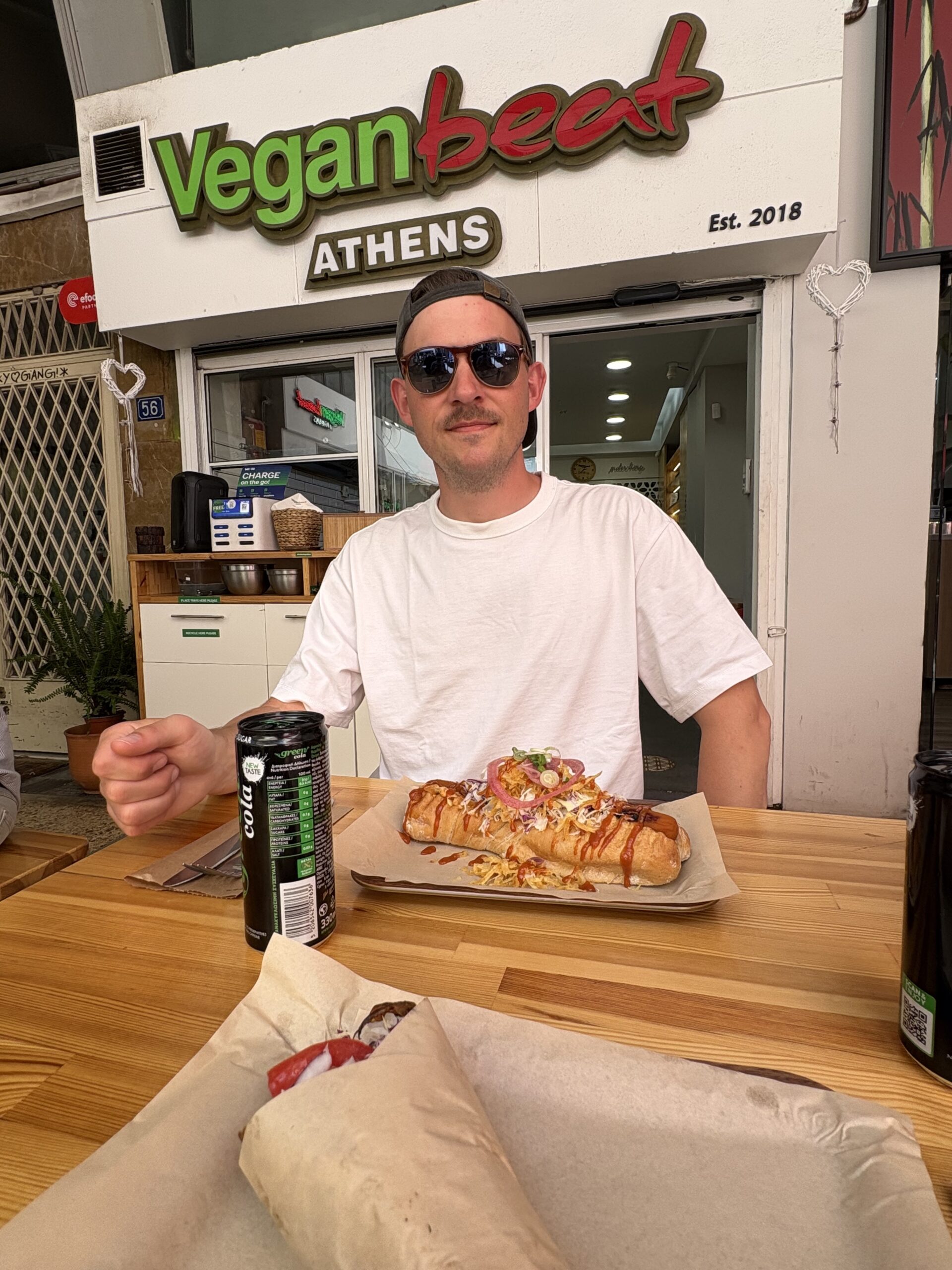 Was für ein toller erster Eindruck in Athen, so darf es gerne weitergehen. Wir stehen also rechtzeitig auf, um den heutigen Tag (04.05) in Athen gut nutzen zu können. Das erste Ziel liegt direkt im Zentrum an der Haltestelle Syntagma am griechischen Parlament. Wir schauen uns den Wechsel der Wachen von der Eliteeinheit „Evzonen“ (tragen die berühmte Fustanella (weißes Faltenröckchen), rote Tsarouchia (Schuhe mit Quasten) und weiße Strümpfe) am Grab des unbekannten Soldaten an. Gelebt wird es zum Teil als militärisches Ritual, aber auch als Touristenmagnet. Da es recht voll ist, hole ich mir, ganz der Grieche, noch schnell einen Frappee am Café, um die 45 Minuten lange Aktion in praller Sonne zu genießen. Danach gehen wir entlang neuer klassischer Einkaufsstraßen in Richtung der alten kleinen Basargassen, um etwas zu frühstücken. Sina hat einen schönen Laden mit veganen Möglichkeiten rausgesucht. Es schmeckt uns beiden sehr gut. Danach müssen wir mir eine neue Zahnbürste kaufen, meine ist leider kaputt. Wir gehen in ein Hondas Center (wie Karstadt oder Galeria). Beim Bezahlen werde ich gefragt, ob ich Taxfree (ohne Steuern) zahlen möchte. Ich bin ja nicht doof und sage natürlich ja. Sie möchte gerne einen Ausweis von mir sehen, das möchte ich nicht so gerne, ich will einfach nur sparen. Ich sage, den habe ich im Hotel vergessen. Wo ich denn herkomme, möchte die Verkäuferin wissen. „Aus Germany“, sage ich. Da gibt es leider kein Taxfree, nur in den USA. So ein Mist, denke ich… Aber meine Freundin, die wohnt doch in den USA. Ich sage, mit voller Überzeugung, um nicht doof dazustehen, dass meine Freundin aus Kalifornien kommt. „Das ist ja super“, sagt sie, dann ist das kein Problem, sie brauche nur noch ihren Ausweis. Sina schaut mich fragend an. Leider hat auch sie ihren Ausweis nicht dabei. Auch das sei dann doch kein Problem, wenn ich ihr den Namen meiner Freundin aufschreibe, und mit der Adresse würde es auch so gehen. Ich wittere eine Chance, die Steuern doch noch umgehen zu können. Sina sagt mir, kurz bevor sie aus dem Geschäft flüchtet, um nicht ins Gefängnis zu kommen, sollte ich dort irgendetwas hinterlassen, das auf sie nicht zurückzuführen wäre, sonst müsste ich nach Dortmund laufen. Aber ich habe ja Fantasie, meine Freundin heißt Claudia Broksmith und wohnt in den Hollywood Hills 43. Es soll ja auch realistisch sein. Ende vom Lied: Ich zahle den vollen Betrag und bekomme die Info, dass ich mit dem Bon am Flughafen die Steuern wiederbekomme. Danke für nichts, aber wieder etwas gelernt. Ich zahle natürlich bar, weil ich auch Angst habe, dass sie mich sonst zurückverfolgen. Nach dem Schock gehen wir dann erstmal Mittagessen im Vegan Beat und machen uns danach auf zur Akropolis. Dort angekommen zahlen wir 30 € pro Person an Eintritt… Geschichte hat und hatte schon immer einen Preis. Es ist interessant und Wahnsinn, was früher doch alles schon gebaut wurde und wie lange das erhalten ist in einigen Teilen. Wir genießen den Wind dort oben und die Aussicht. Abends gibt es noch einen Burger um die Ecke und wir laufen nach dem Sonnenuntergang durch die schön beleuchtete und belebte Stadt zur Haltestelle zurück und fahren nach Hause. Καληνύχτα